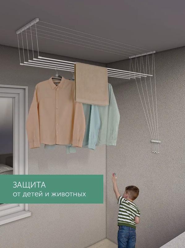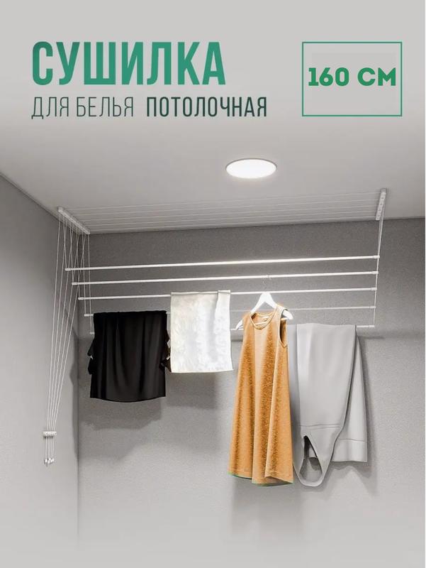 під стелею й не займе багато місця.Сталева сушарка для білизни зі стельовим кріпленням зручна у використанні --