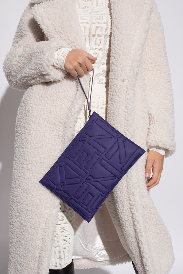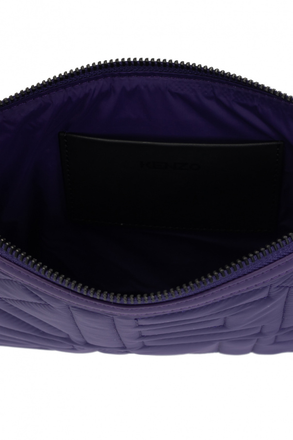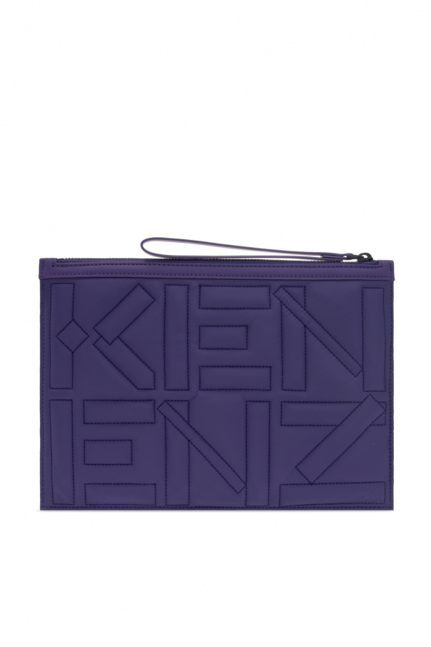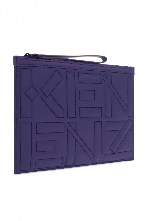 Purple clutch from Kenzo. Embroidered with the brand's logo, this design features a zip fastening, a wrist strap and one internal compartment with a card slot.