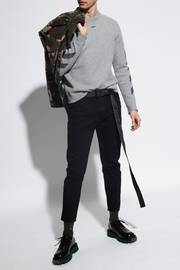 Grey crewneck sweater from Off-White. Crafted from cotton with ribbed detailing and the brand's logo, this jumper features an elasticated bottom hem and cuffs.