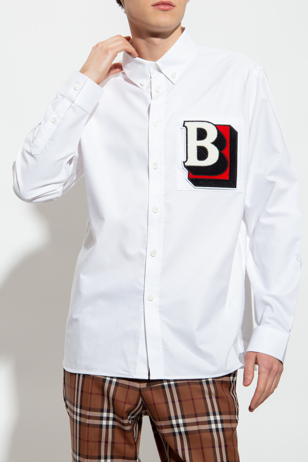 White shirt from Burberry. Made of cotton, this garment features a front pocket, black, white and red logo patch and button cuffs.