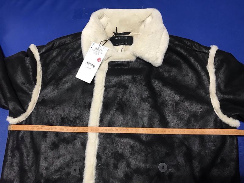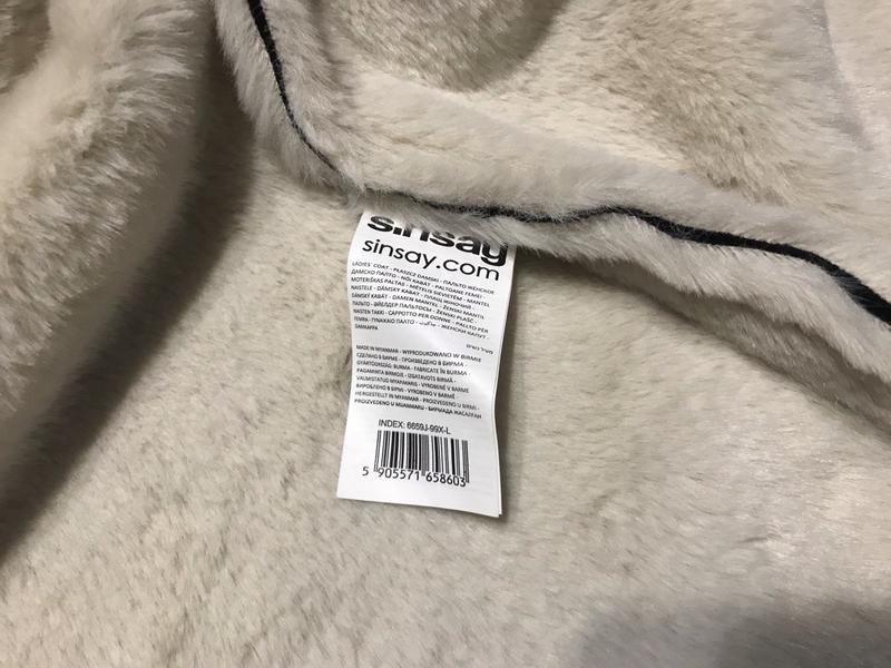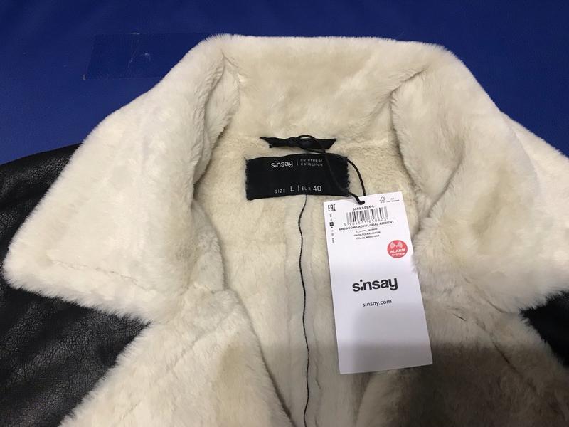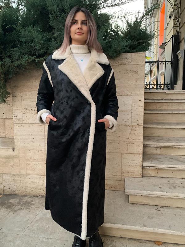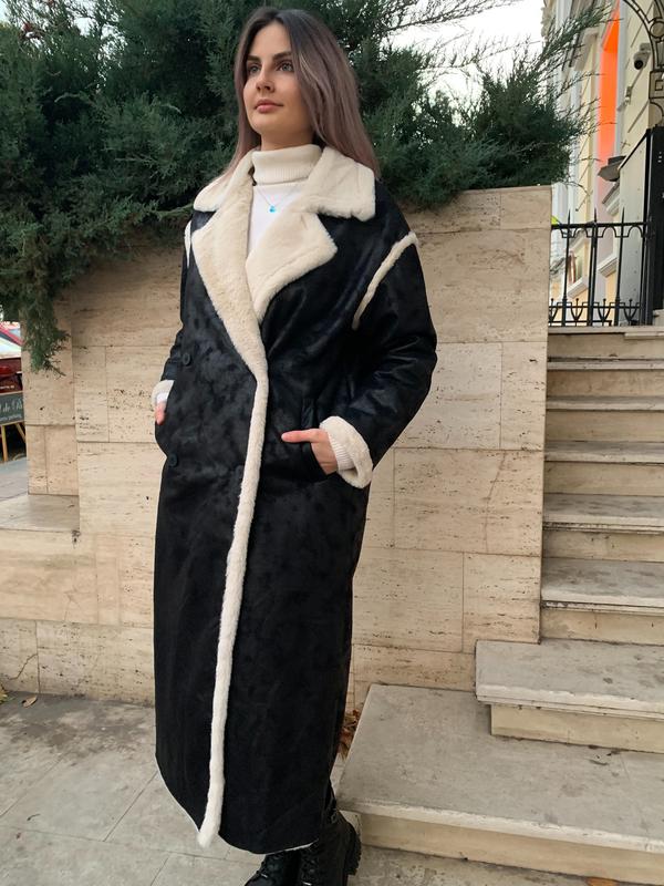 Нова жіноча Еко дублянка дублянка чорна довга пряма еко хутро Пальто чорного кольору з білим екохімдове Sinsay Розмір L