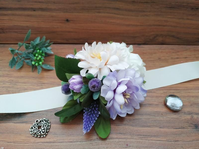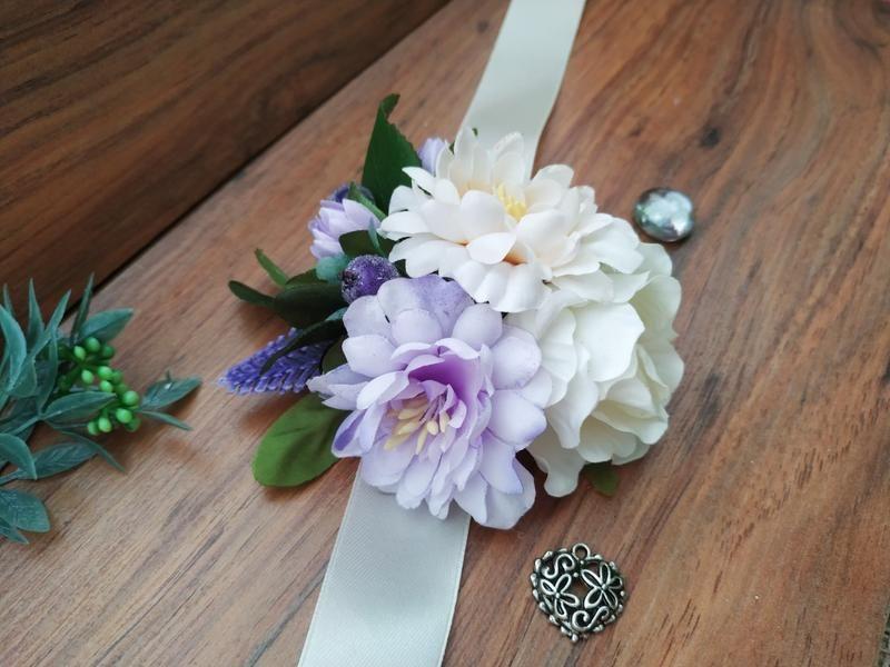 Идея использовать цветы в петлице пришла из Франции. Пришла и покорила своим шармом, как и другие веяния французской моды. И вот уже на протяжении нескольких столетий украшать одежду бутоньерками стало традиционным и они стали неотъемлемым аксессуаром любого свадебного торжества. Маленький и красивый букетик сделает мужской костюм не просто торжественным, а свадебным, гармонично дополнит наряд невесты, позволит выделить из числа гостей друзей жениха и подружек невесты. Именно бутоньерки создают особенную свадебную атмосферу и придают образу романтичность. Этот роскошный букетик в кремовых и лавандовых тонах украсит наряд свидетельницы и подчеркнет ее особую роль на торжестве. Он прекрасно переживет длинный свадебный день, сохранив свой внешний вид и останется на память о важном событии. Бутоньерка на руку подойдет также в качестве аксессуара для девичника или выпускного вечера. Выполнена из тканевых цветов высокого качества, искусственной зелени, декоративных флористических добавок. Размеры: диаметр 9 см.