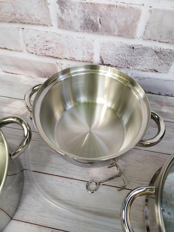 Комплектація соковарки: Складається з 3-х каструль і кришки - Корзина для варіння на пару, - Каструля для соку, - Каструля багатофункціональна, - Скляна кришка з ручками срібного кольору, - Силіконова трубка з металевим зажимом.