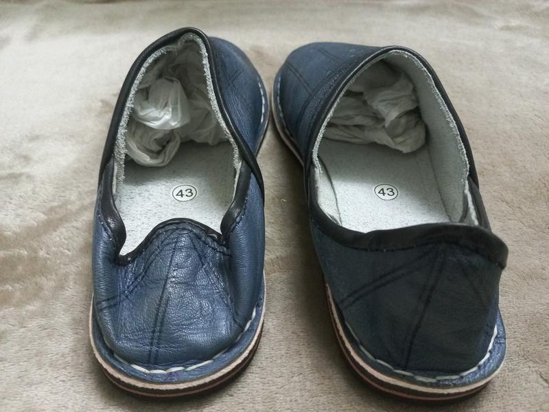 Превосходные домашние тапочки полностью кожаные кожа высшего качества очень красивые лёгкие и удобные сток размер EURO 42-41длина по стельке 27 см шикарный вид смотрятся роскошно выглядит прилично изысканно мягкая и удобная подошва хорошо прошита качественная обувь которая порадует Вас осенью и весной прослужат Вам долгое время не пожалеете рекомендую.