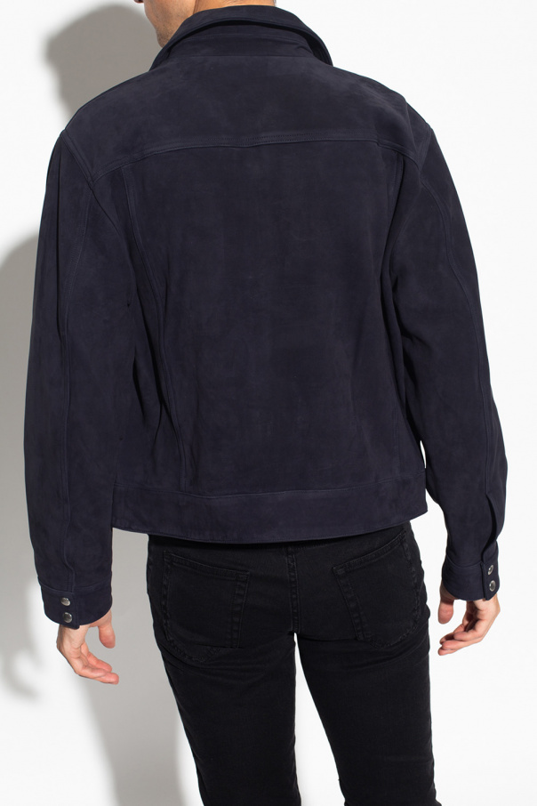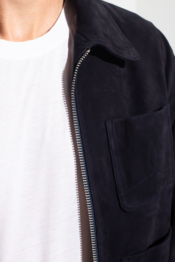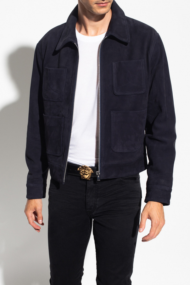 Navy blue jacket from Iro. Crafted from lamb suede, this style features a zip fastening and four slip pockets on the front.