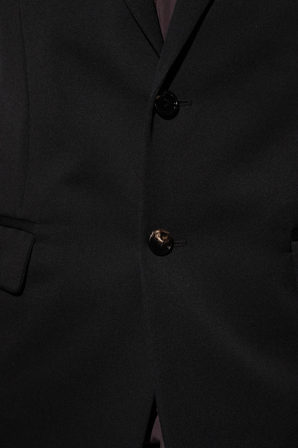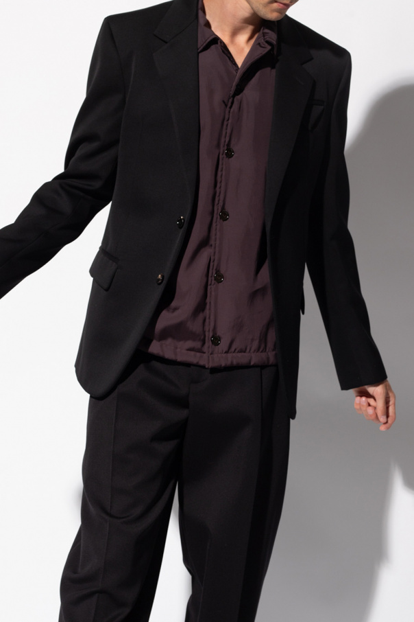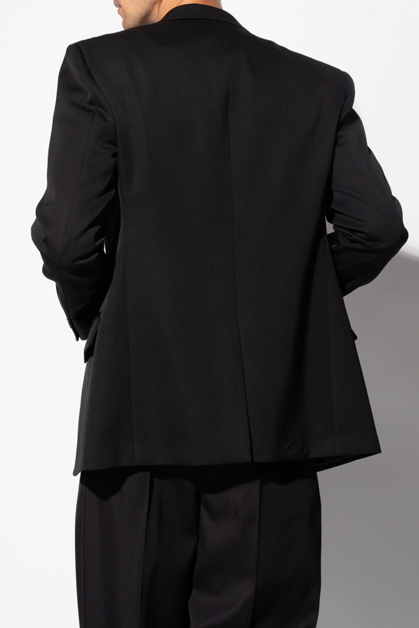Black blazer with notch lapels from Bottega Veneta. Made of wool, this garment features long sleeves, button fastenings, two flap pockets, one slip pocket and a single rear vent.