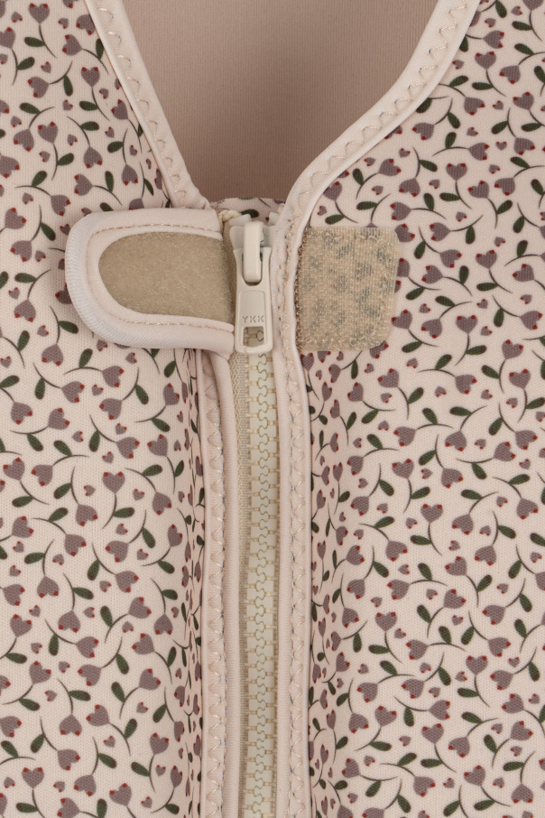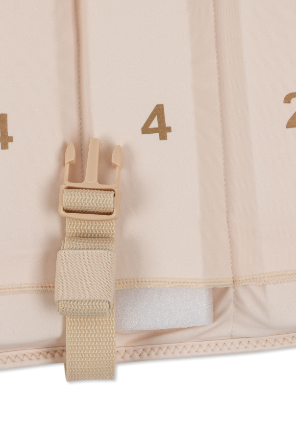 Introducing the Konges Sløjd Swimming Vest, a paragon of safety and style for your child\'s aquatic adventures. This meticulously designed vest is fashioned from a durable blend of 80% neoprene and 20% polyester, ensuring a comfortable fit that\'s built to last. The vest\'s beige hue, adorned with a fine, multicolored pattern, offers a visually appealing look that does not compromise on functionality. With a focus on safety and ease of use, this vest features a secure zipper closure complemented by a Velcro strap to prevent accidental unfastening. A zippered crotch strap is ingeniously integrated to prevent the vest from slipping off, while adjustable waist straps ensure a snug fit, adapting to your child\'s growing body. Furthermore, the vest is equipped with removable foam sticks that can be adjusted or removed incrementally to match your child\'s swimming proficiency, promoting confidence and independence in the water. The vest\'s design is accented with delicate ruffle details on the shoulders, adding a touch of elegance to its functional form. Despite its sophisticated design, it\'s important to note that this vest is not a lifesaving device and should be used under constant supervision in safe water depths. Why Choose This Swimming Vest? Adjustable Buoyancy: Removable foam sticks allow for customized support as your child\'s skills develop. Secure Fit: Zipper with Velcro strap and crotch strap ensures the vest stays in place. High-Quality Materials: Crafted from a blend of neoprene and polyester for durability and comfort. Stylish Design: Beige color with intricate pattern and shoulder ruffles for a fashionable look.