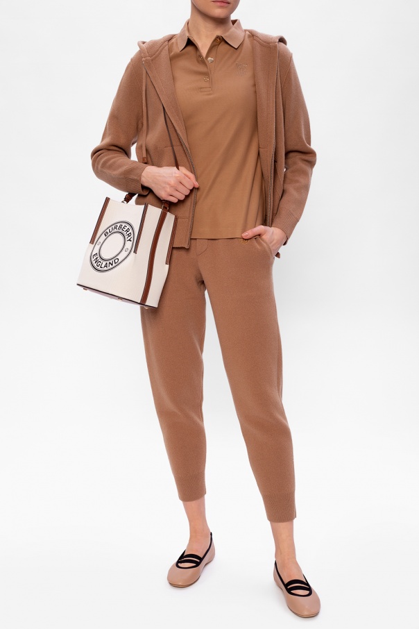 Light brown ‘Ballerina’ flats from Burberry. Crafted from lamb leather, this design features two elastic straps, pull tab with a raised logo appliqué and a beige sole in leather and rubber.