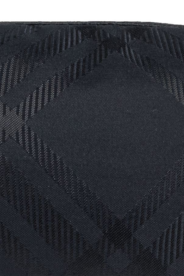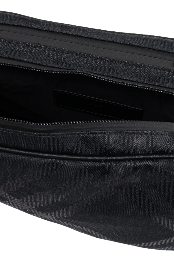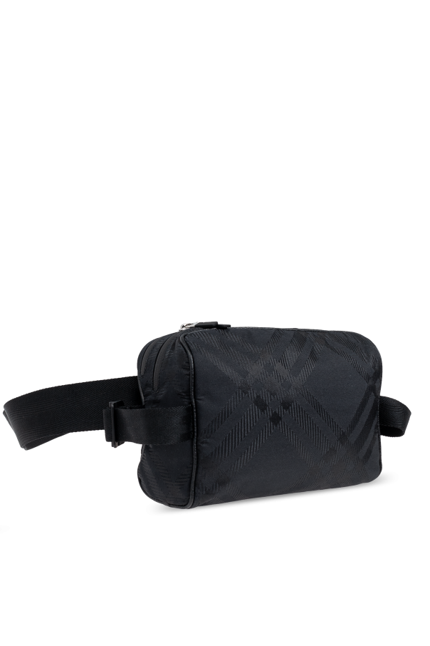 Introducing the quintessence of sophistication and functionality: the Check-Pattern Belt Bag by Burberry. Crafted with an exquisite eye for detail, this accessory stands out for its distinctive check pattern, meticulously designed with dense lines of varying thickness to create geometric shapes, set against a timeless black background. The fabric, a blend of 78% Polyamide and 22% Polyester for the outer layer and a 100% Polyamide interior, ensures a texture that is both visually appealing and durable. The bag\'s rectangular silhouette with rounded corners exudes elegance, while the adjustable strap offers versatile wearing options—around the waist or across the shoulder, secured by a sleek metal buckle for effortless adjustment. Its practicality is highlighted by several compartments and pockets, sealed with robust metal zippers, indicating a design where functionality meets style seamlessly. Notably absent of any ostentatious branding, this piece signals a subtle, minimalist approach, characteristic of the exclusive Burberry ethos. Inside, two compartments provide ample space for essentials, making it not only a statement piece but also a testament to thoughtful design and practicality. Why Purchase This Product? Elegant and timeless check pattern design. High-quality materials and metal components for durability. Adjustable strap for versatile wearability. Functional with multiple compartments for organization. Subtle branding, embodying minimalist luxury.