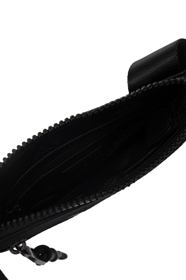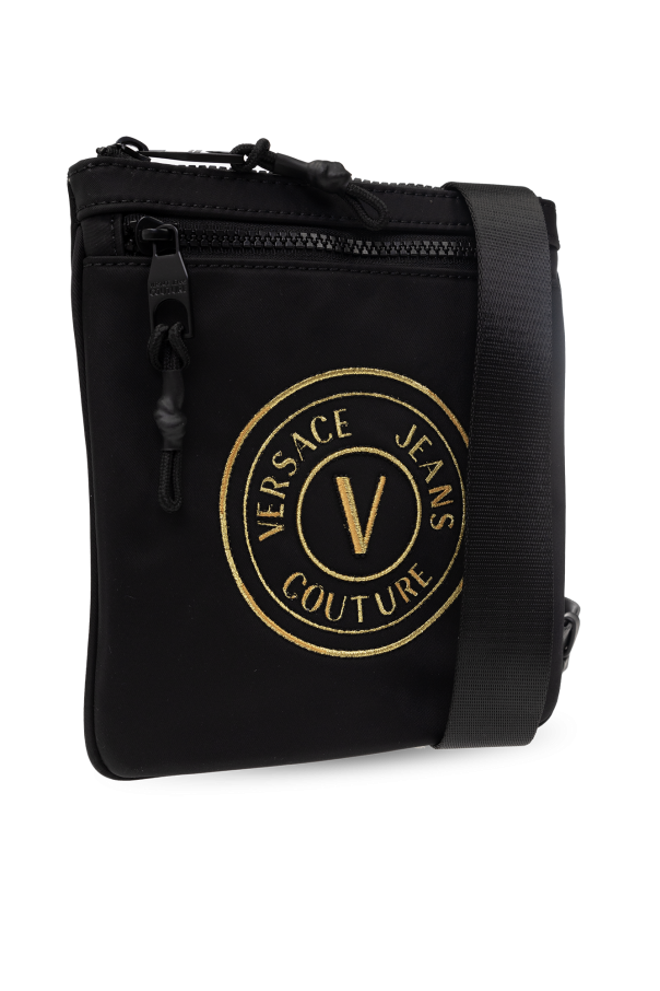 Black shoulder bag from Versace Jeans Couture. Crafted from fabric, this design secures with a zipper and showcases an adjustable shoulder strap, gold-tone logo embroidery, one zip pocket on the front and one internal compartment with one zip pocket and one slip pocket.