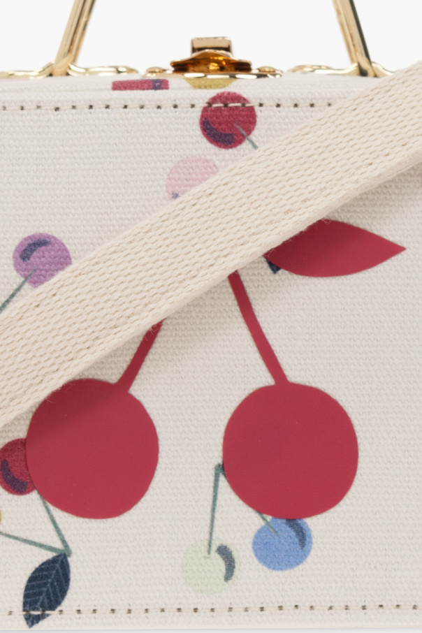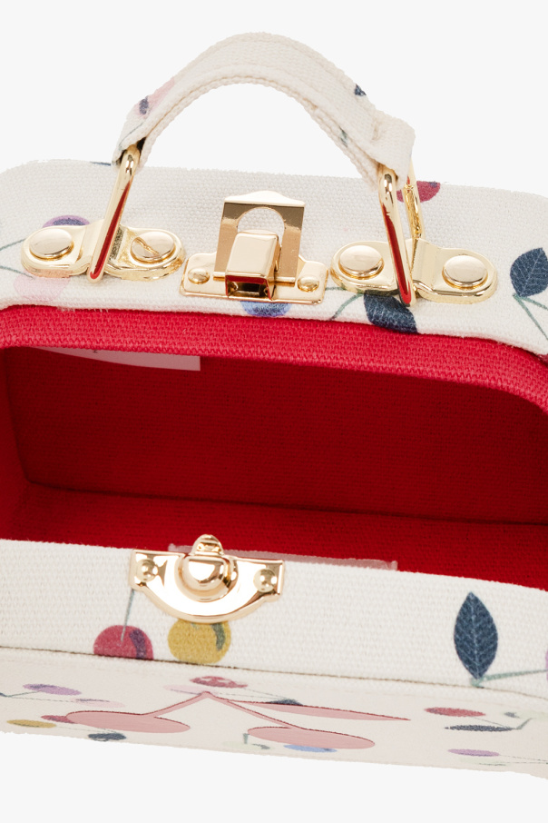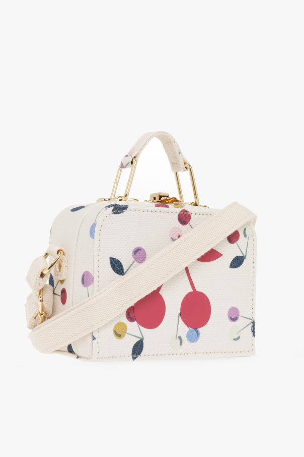 Cream shoulder bag from Bonpoint. Crafted from cotton, this design features a logo pattern, a snap fastening, a shoulder strap, gold-tone metal hardware and one internal compartment.