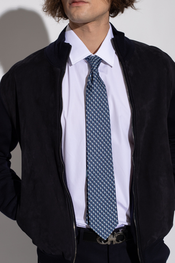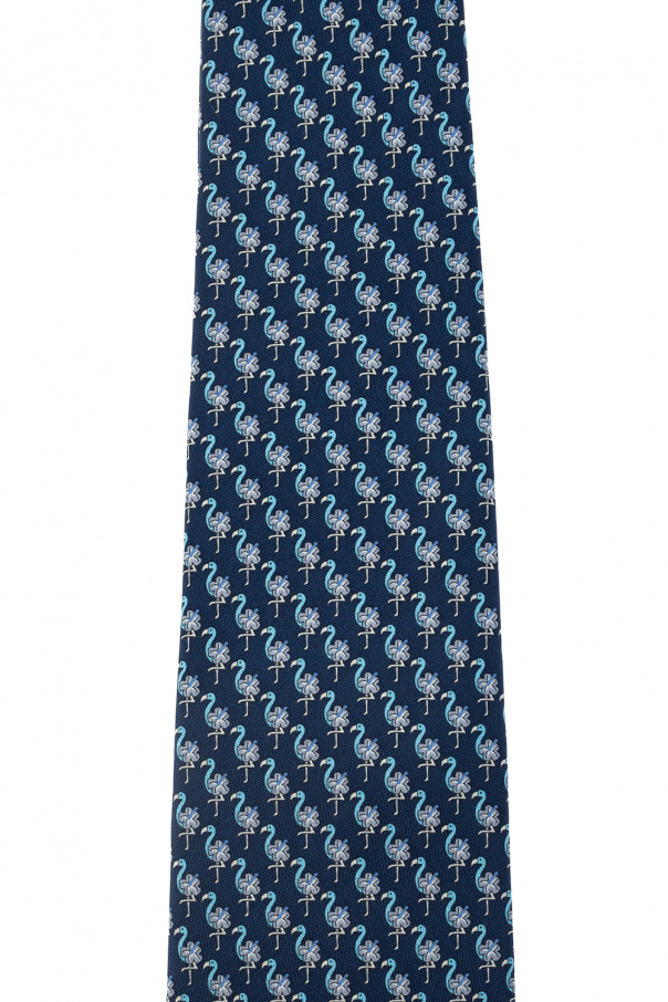 Navy blue tie from Salvatore Ferragamo. Made of silk, this item showcases a colourful animal motif.