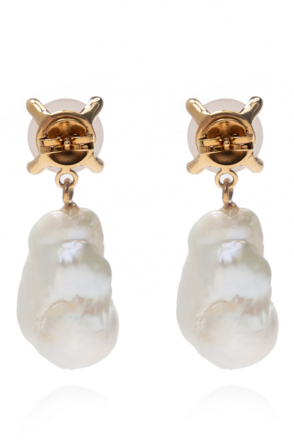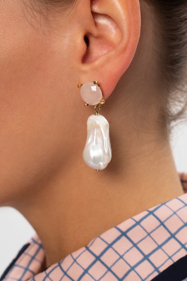 Gold-tone drop earrings embellished with pink stones and pearls from Chloé. Made of brass.
