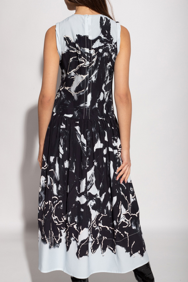 Navy, light blue and cream dress from Proenza Schouler. Fastened with a concealed back zip and a hook, this garment features a pattern, stitching details, two slip pockets and a raw-trimmed round neck.