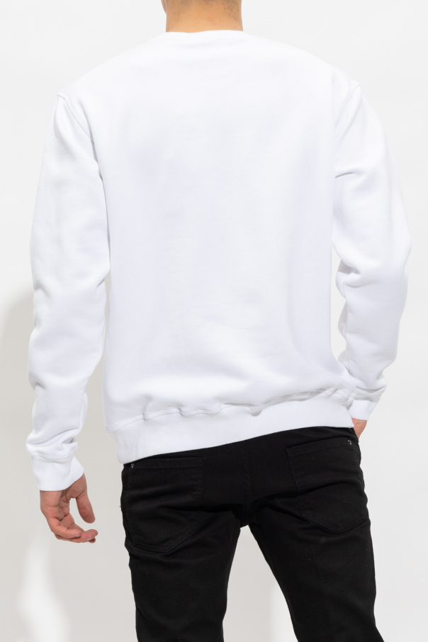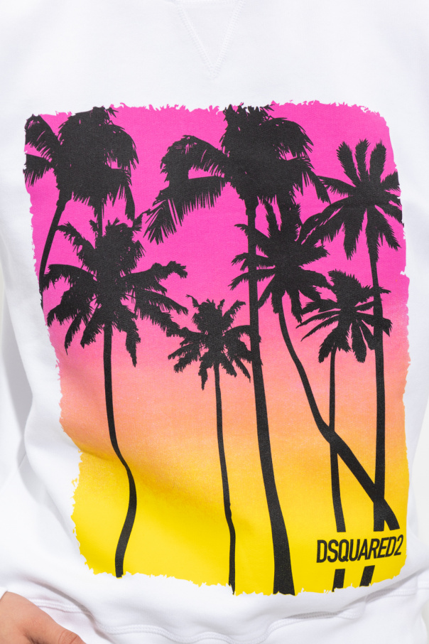 White crewneck sweatshirt from Dsquared2. Crafted from cotton jersey, this style features a colourful graphic print with a palm tree and the brand's logo, long sleeves and ribbed trims on the collar, bottom hem and cuffs.