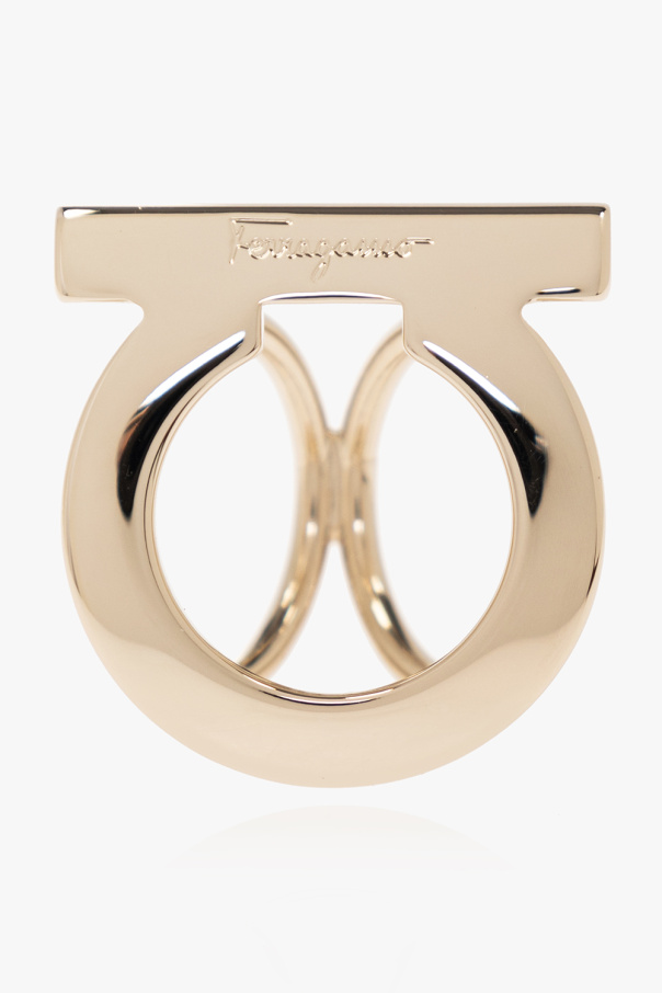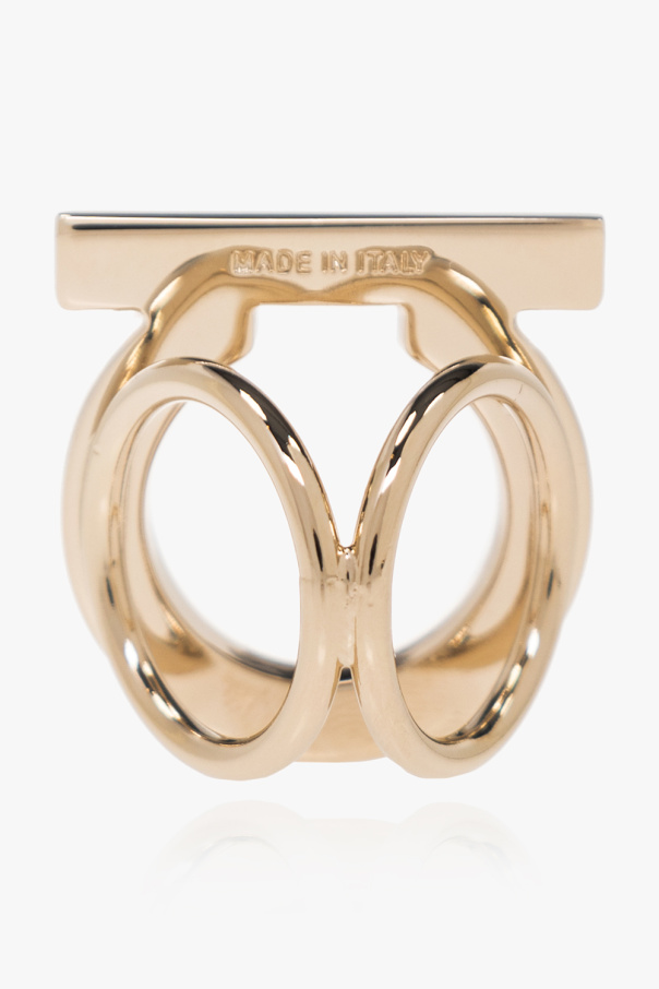 Gold-tone logo-shaped ring from FERRAGAMO. Made of brass.