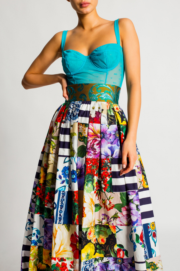 Blue transparent body with adjustable straps from Dolce & Gabbana. Fastened with a zip and hooks, this garment boasts the label’s embroidered logo.