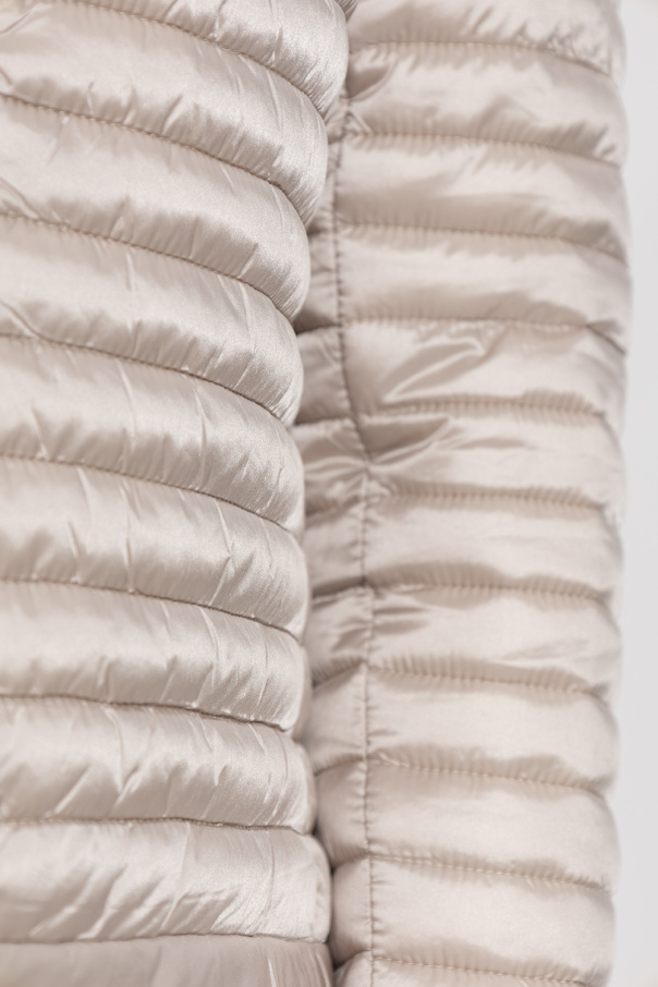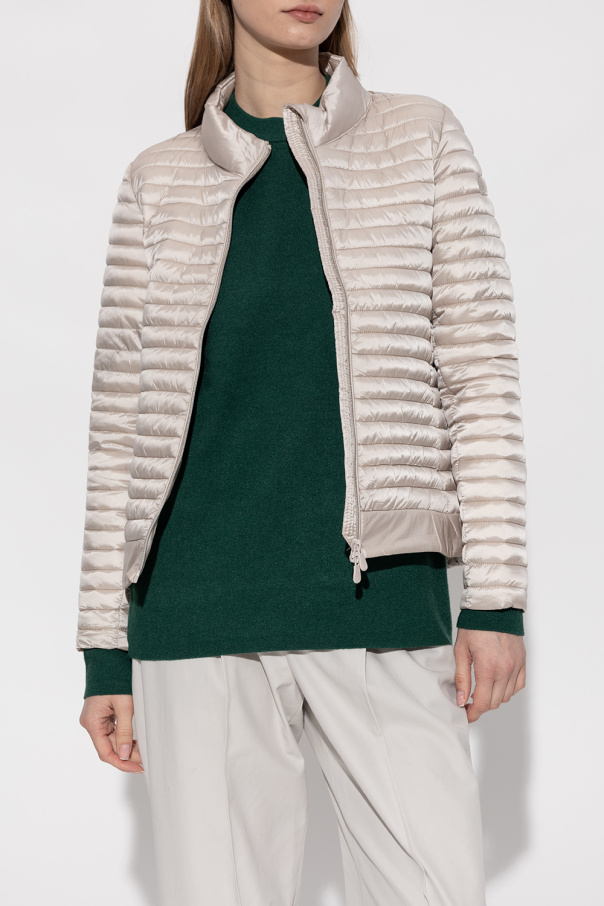 Light beige ‘Alyssa’ quilted jacket with a standing collar from Save The Duck. Crafted with a glossy finish, this style features a two-way zipper, two front zip pockets and long sleeves – one has a rubber logo patch. It\'s made with high-density 100% nylon fabric which guarantees weightlessness and fluffiness. It is thin yet resistant, thanks to its features it guarantees water repellency and wind protection, it absorbs humidity and dries rapidly.