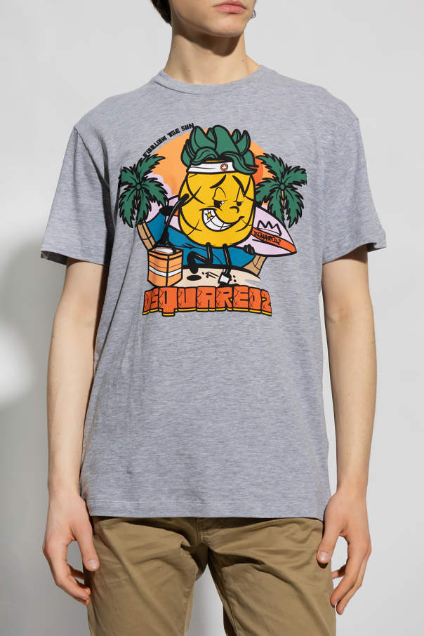 Grey T-shirt from Dsquared2. Made of cotton, this short sleeve design features a multicolored logo print and ribbed crew neck.