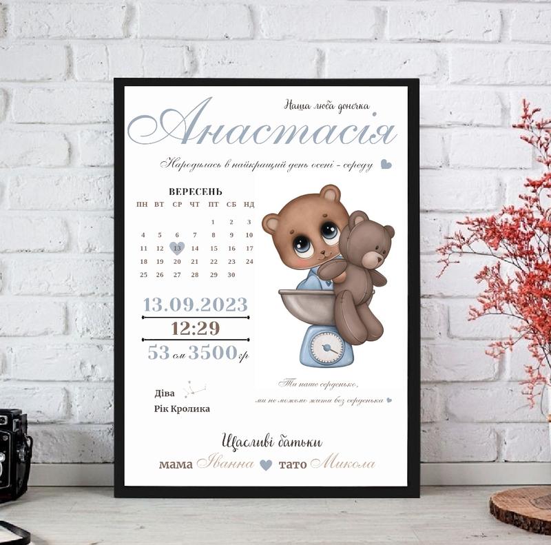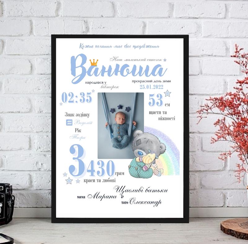 Виготовляємо дитячі метрики, сімейні постери, привітання з днем народження, дипломи та грамоти та багато іншого.