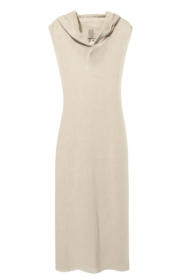 Beige poncho from Rick Owens. Crafted from cotton with ribbed detailing, this style comes with a hood.