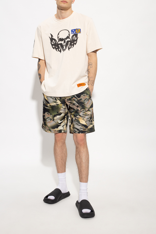 Black slides from Heron Preston. This model showcases an embossed logo. More than half of its weight is made out of certified recycled pre-consumer thermoplastic rubber.