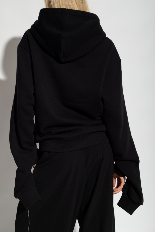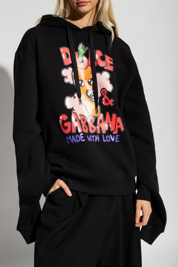 Black sweatshirt with a drawcord-adjustable hood from Dolce & Gabbana. Crafted from cotton jersey with a relaxed fit, this style showcases a colourful graphic print with a rabbit and the brand\'s logo by the Italian cartoon designer Gianpiero D\'Alessandro on the front. It is complete with an elasticated bottom hem and cuffs.