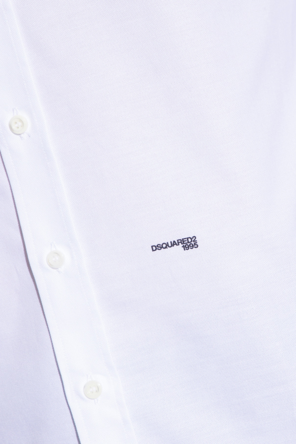 White fitted shirt from Dsquared2. Made of cotton, this design features button fastenings, a black logo print and long sleeves with buttoned cuffs.