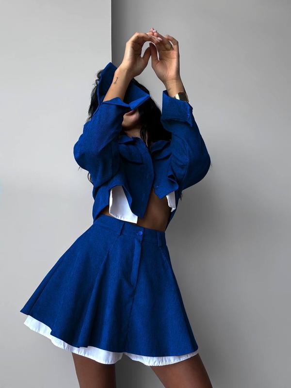 ☑Тканина:мікро вельветКостюм двійка 🔥піджак +юбка з підкладкою шортиків .Дуже зручний та стильний костюм який підійде