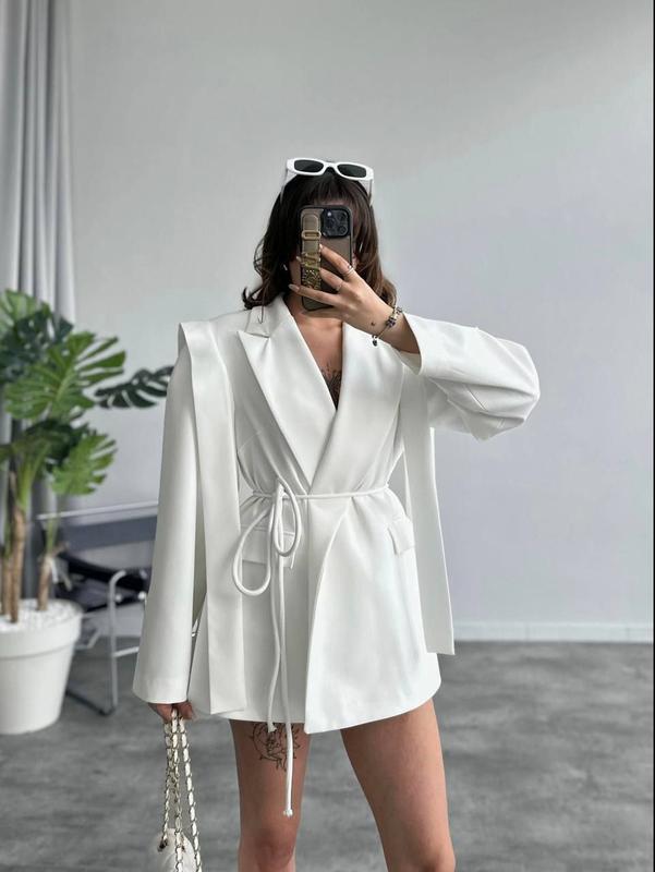 Зроблено в Україні?:Виробництво ,Матеріал:Костюмна тканина ,Сезон:Літо , Осінь , Весна , Демісезон ,Принт:У смужку ,Фасон:На запах , Плаття-піджак ,Опис
