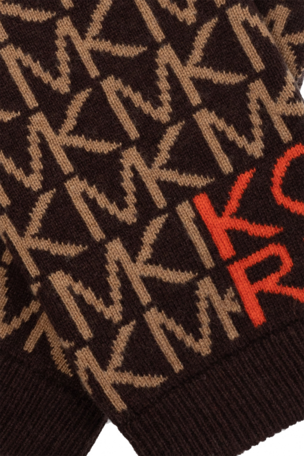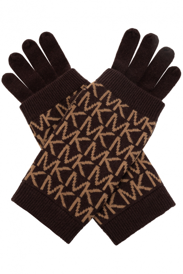 Brown, beige and orange gloves from Michael Michael Kors. Embroidered with the brand\'s logo, this pair features an elastic edge.