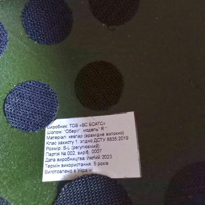 Шлем "ОБЕРІГ R" - это сертифицированный кевларовый (арамидный) баллистический шлем соответствует 1-му классу защиты согласно ДСТУ 8835:2019. Испытания проводились в лаборатории обороны Украины. Шлем имеет четырехточечную систему крепления с регулировкой обжатия головы и возможностью регулировки размера с перестановкой системы.Демпферные подушки с двумя слоями обеспечивают комфорт и поддерживают регулирование по размеру.