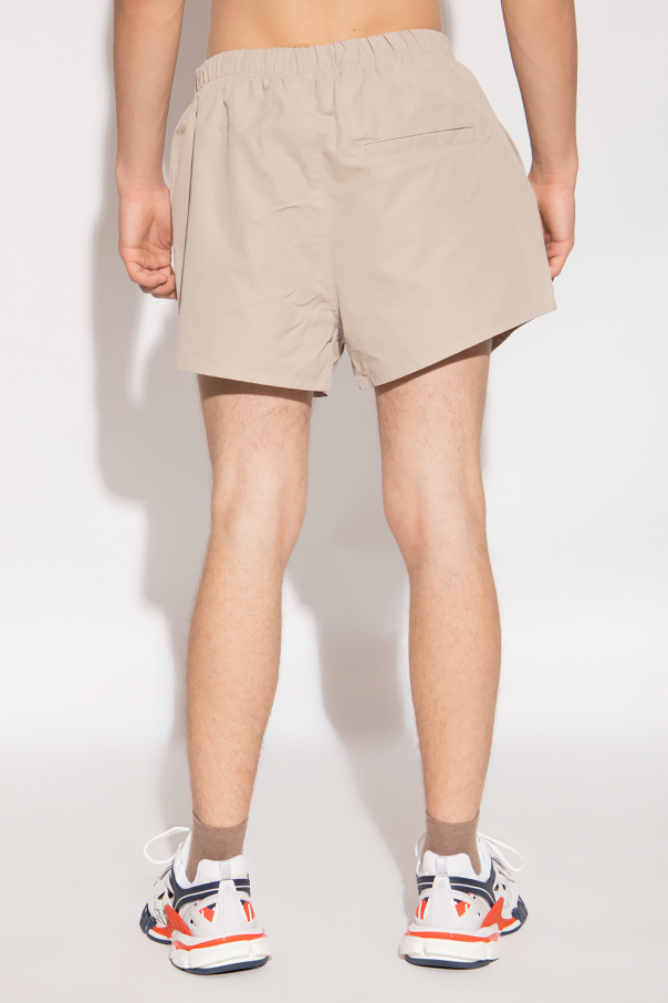 Light grey shorts from Fear Of God Essentials. Produced from a cotton blend, this pair features an elastic drawstring waistband, the label’s signature rubber patch in black, two front pockets and one back pocket.