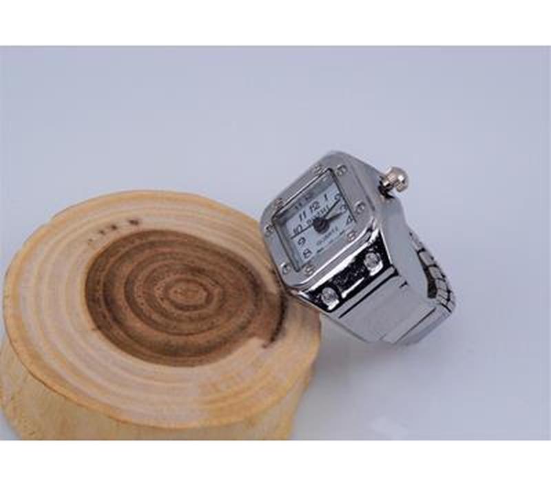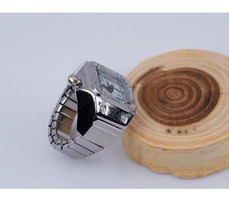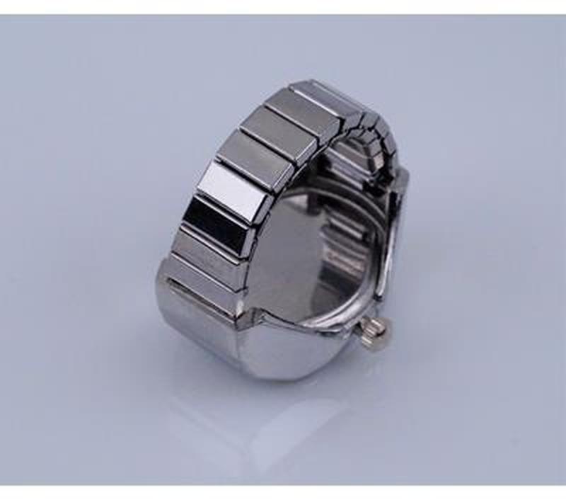 Часы-кольцо на палец кварцевые стальные, с белым циферблатом и растягивающимся
