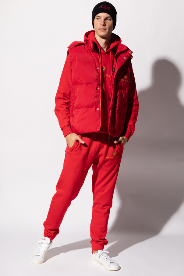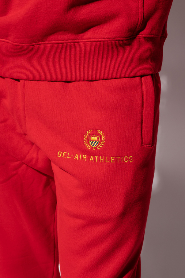 Red sweatpants from Bel-Air Athletics. Crafted from cotton, this pair features a drawstring waist, two frontal zip pockets, elasticated cuffs and an embroidered logo.