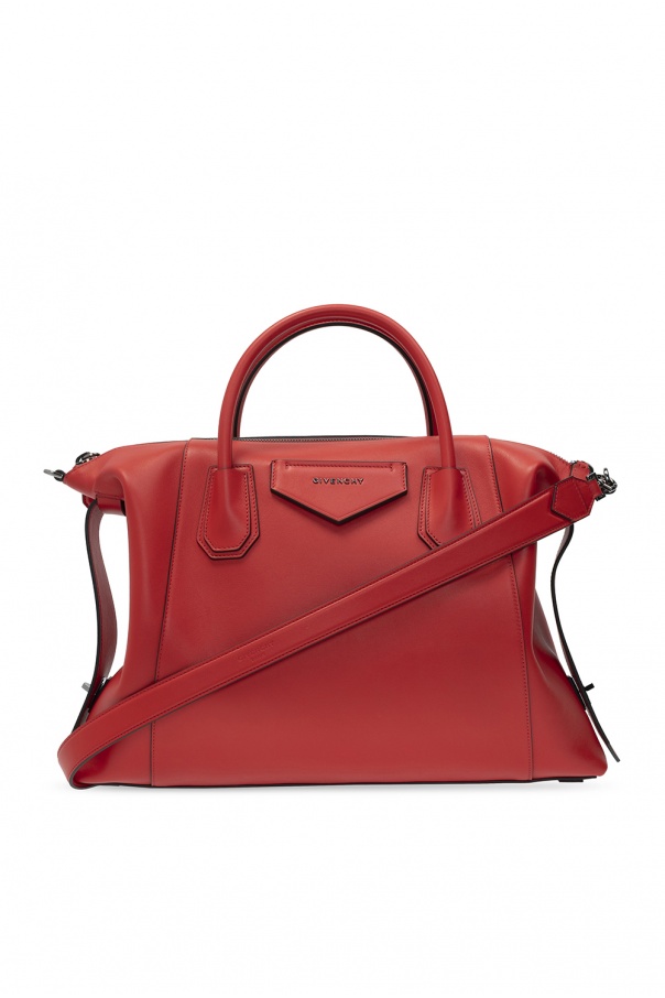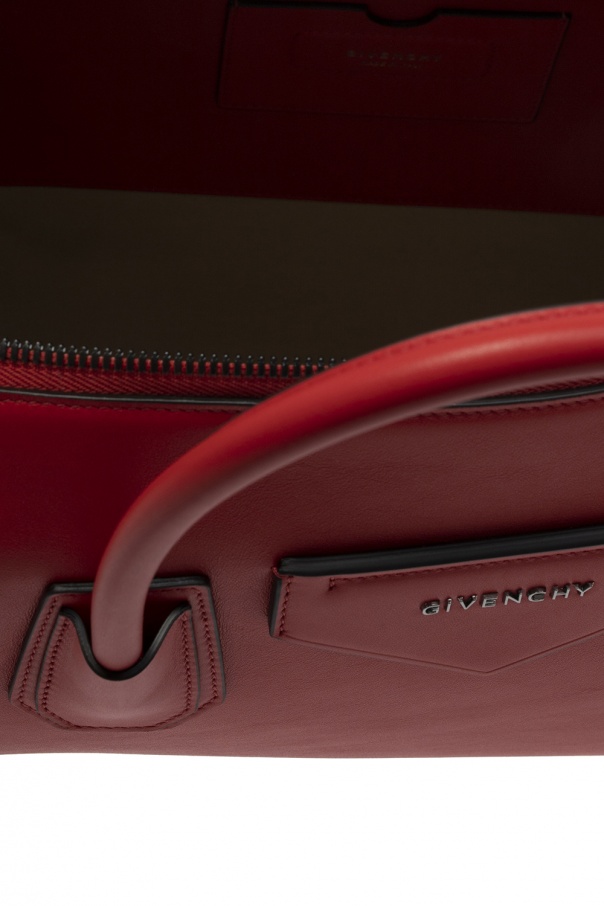 Red ‘Antigona’ holdall from Givenchy. Size medium. Spruced up with silver-tone logo metalware, this calf leather-crafted design fastens via a zip and features two half-round handles, an adjustable shoulder strap and interior with one compartment, one slip pocket and one card slot.