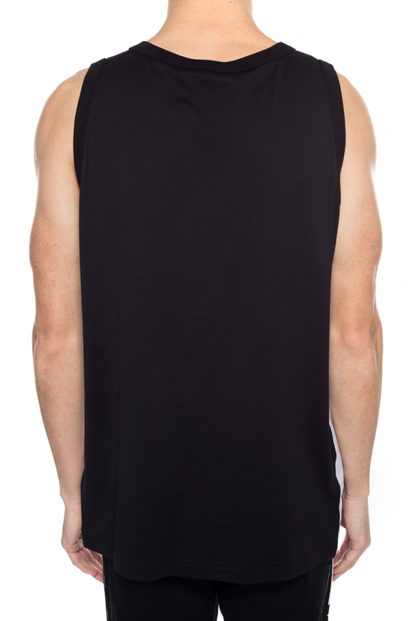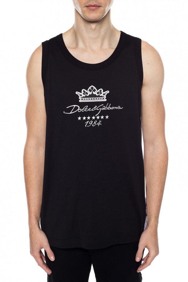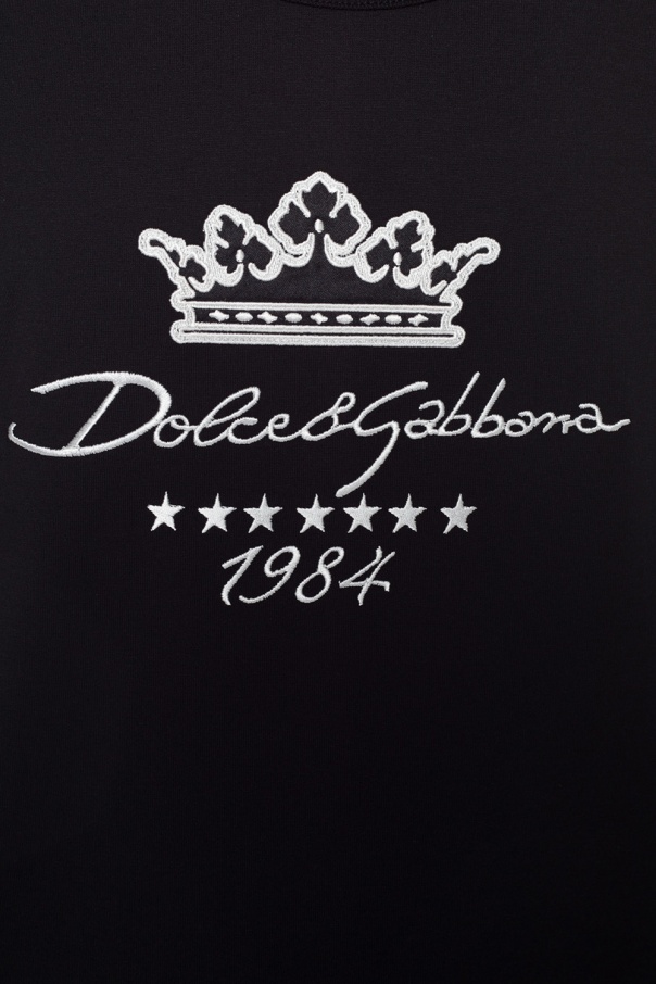 Black and white crewneck top from Dolce & Gabbana. Made of cotton. Embellished with embroidered white detail with logo across the front. Also features textured inserts with logo.