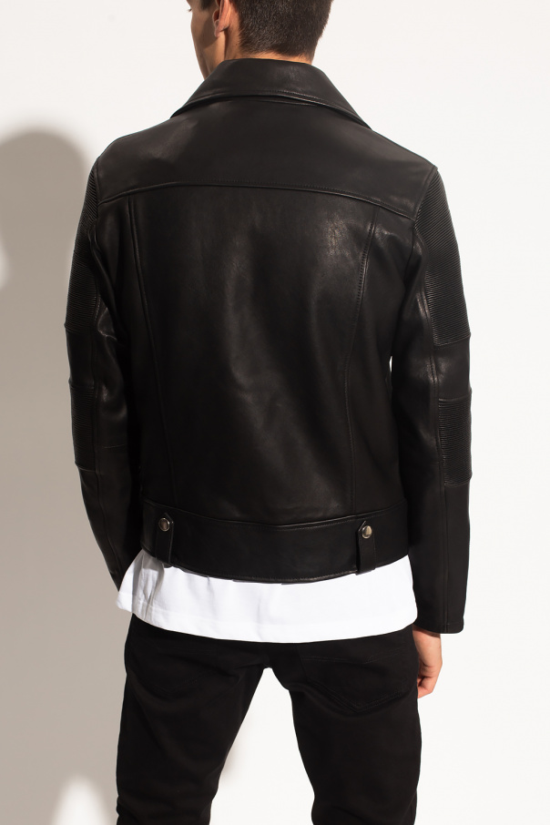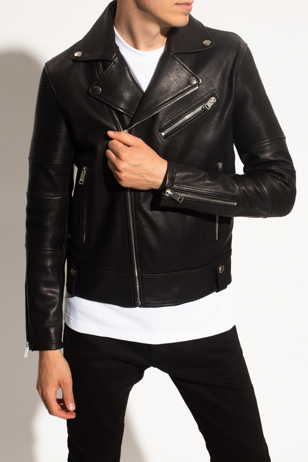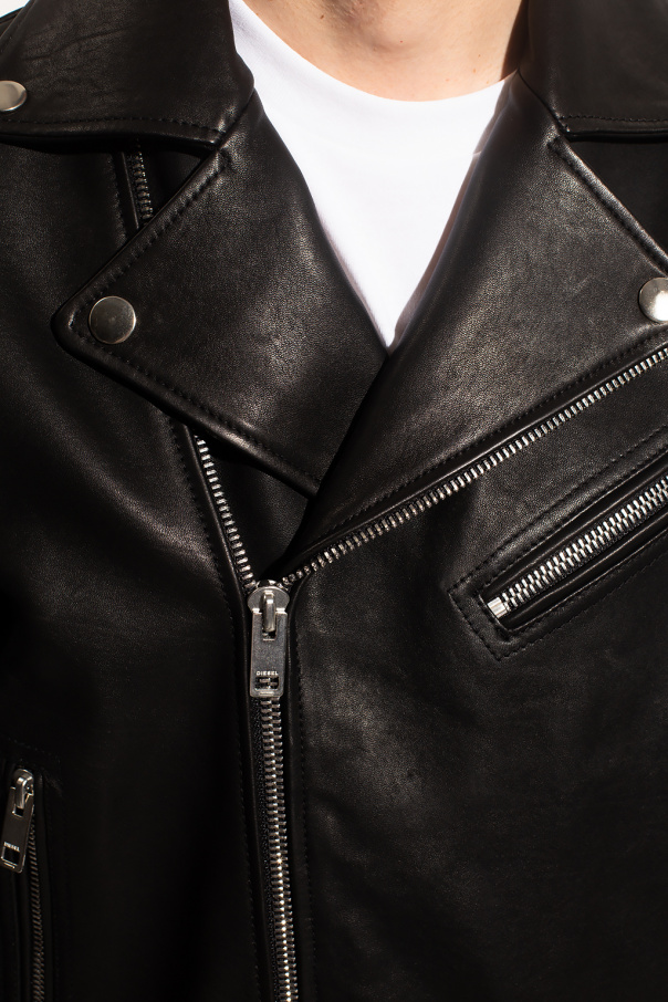Black ‘L-Starkville’ jacket from Diesel. Made of lamb leather, this design features a zip fastening, decorative stitching details, three zip pockets, notch lapels and long sleeves with zip details.