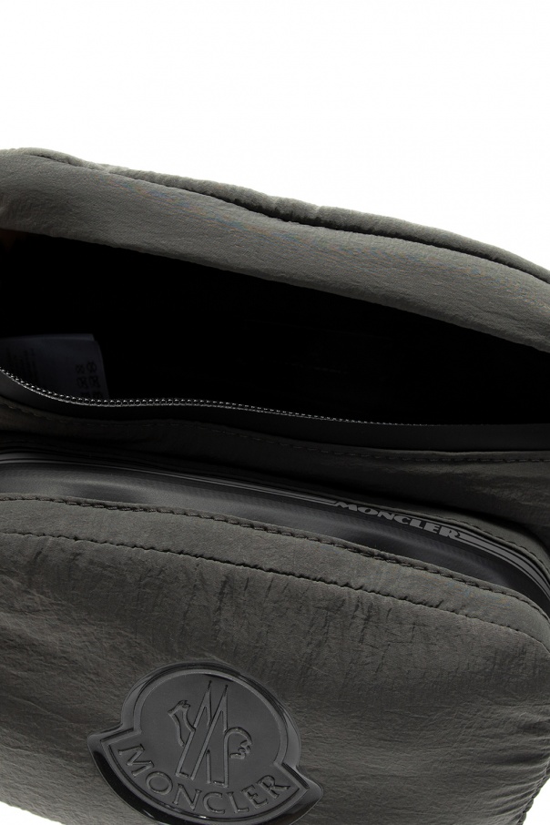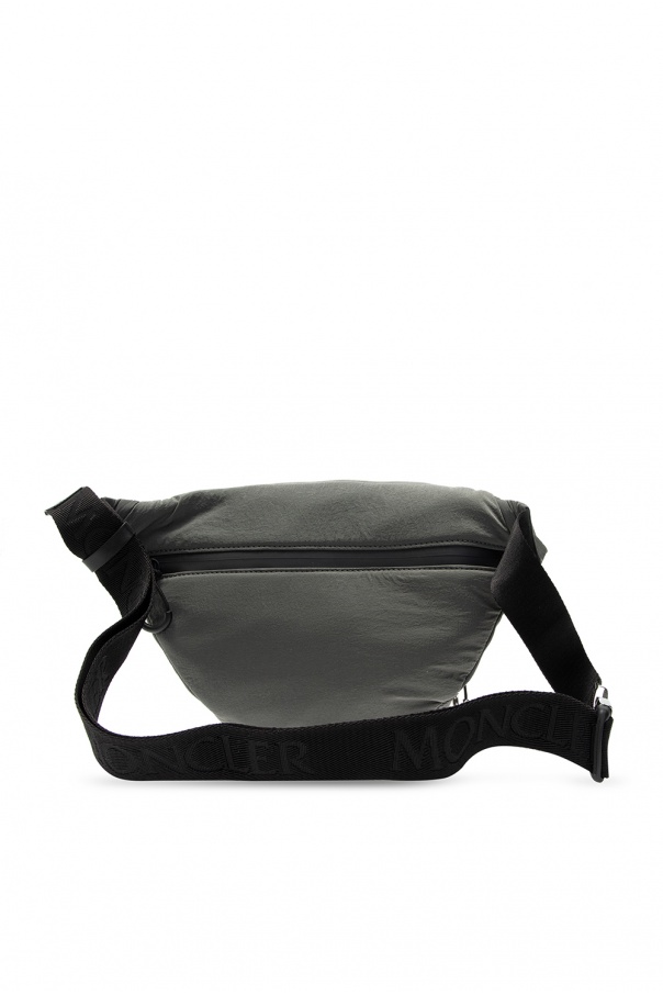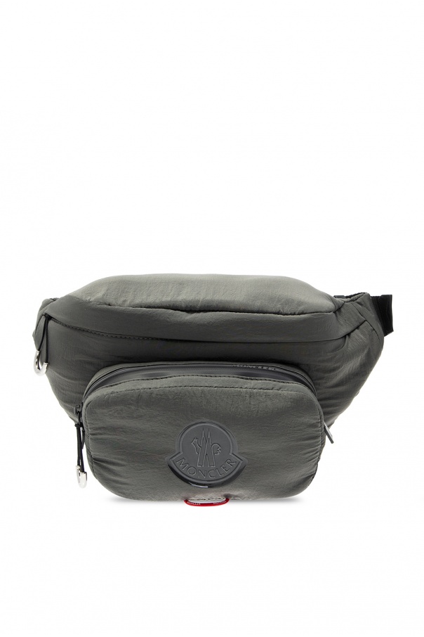 Grey ‘Durance’ belt bag from Moncler. Emblazoned with a rubberised logo appliqué, this design fastens via zipper and employs two external zip pocket on the front and back, red and white branded detail, an adjustable black strap and one internal compartment.