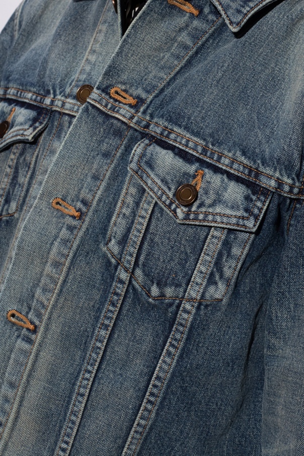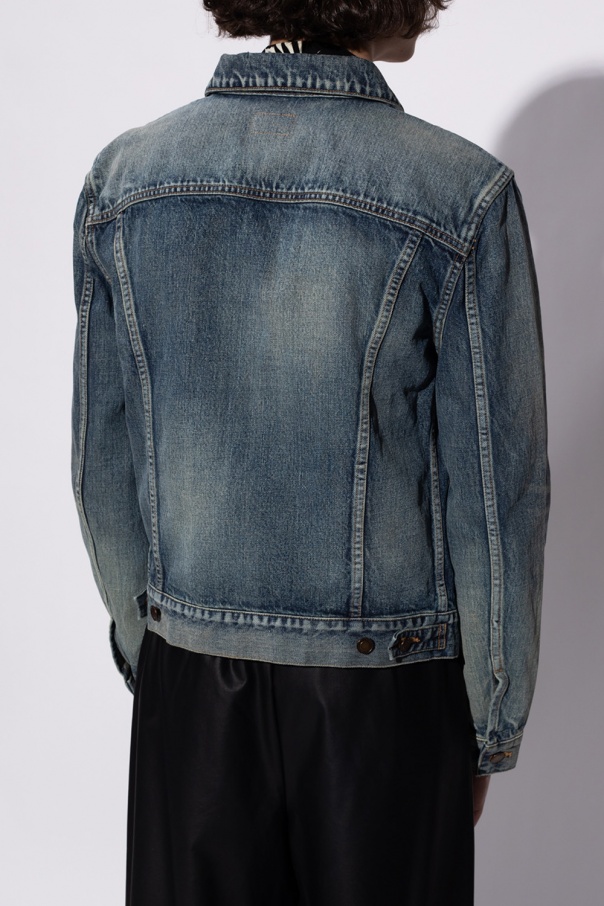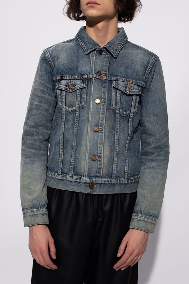 Blue denim jacket from Saint Laurent. Fastened with buttons, this item features long sleeves and two flapped pockets with buttons on the chest.