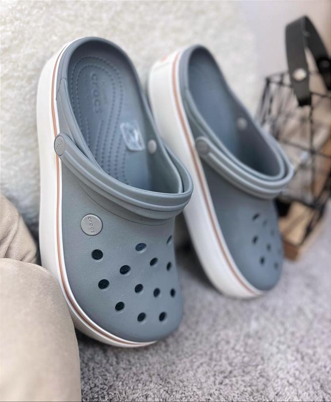 Выполнены из литого материала Croslite, имеют амортизирующий эффект.Crocs Crocband Platform Clog Light Grey/Rose серые