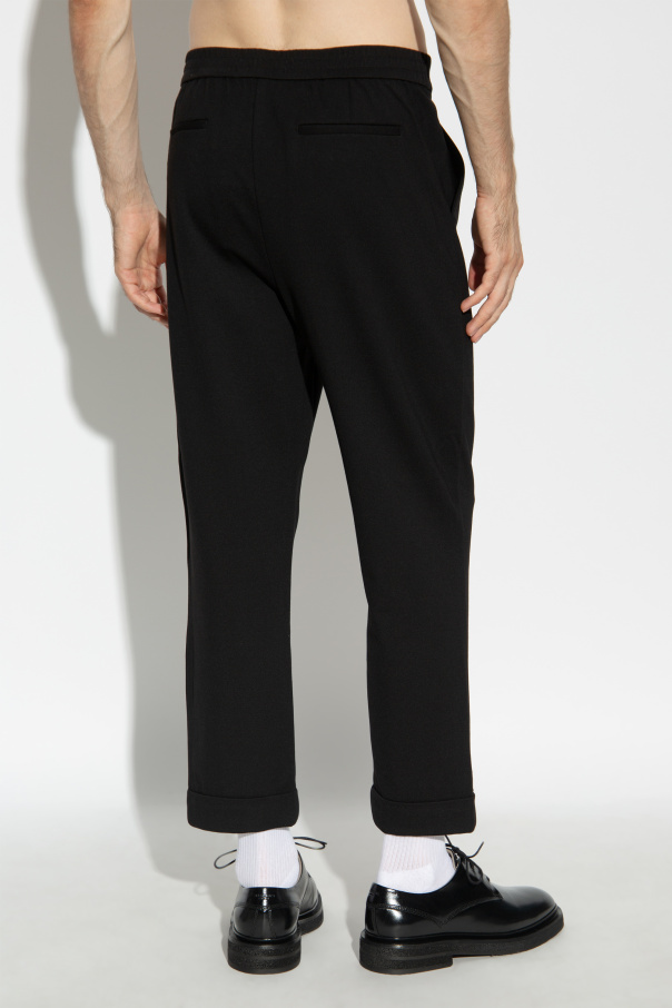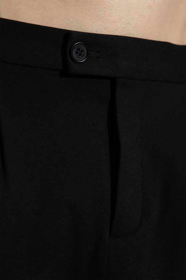 Introducing the Helm Pants by AllSaints, a testament to sartorial elegance and refined craftsmanship. These exclusive men\'s trousers, hailing from the esteemed designer\'s collection, epitomize classic sophistication with a modern twist. The Helm Pants feature a straight, classic cut that subtly tapers towards the cuffed hems, adding a touch of elegance. With a standard rise, these trousers ensure a comfortable and flattering fit. Expertly crafted from a high-quality, smooth fabric with a matte finish, they exude a sophisticated charm. The dominant black color offers versatile styling options, making these pants a timeless addition to any wardrobe. Attention to detail is evident in every stitch. The trousers fasten with a button and zipper, while front pleats enhance fit and aesthetic. The back boasts two buttoned pockets, adding both functionality and style. An elastic waistband ensures comfort, while the absence of visible logos reflects the subtle elegance of the design. These trousers are perfect for both casual and formal occasions, embodying the AllSaints ethos of uncompromising, innovative fashion. Why Purchase the Helm Pants? Classic, tapered cut with elegant cuffed hems High-quality, matte finish fabric Versatile black color for various occasions Functional design with buttoned back pockets Comfortable elastic waistband Subtle elegance with no visible logos