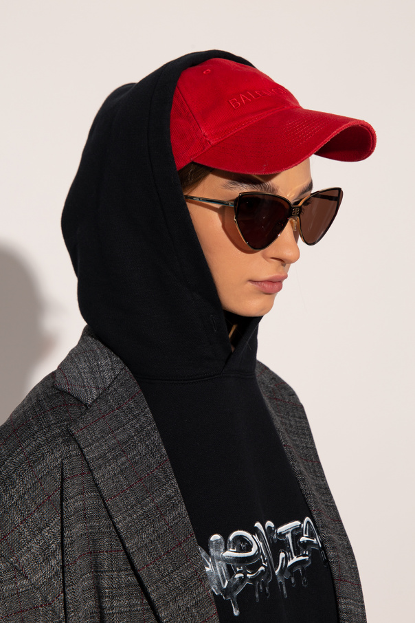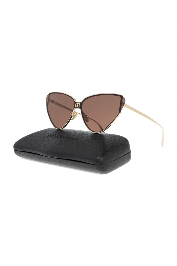 Gold-tone ‘Shield 2.0 Cat’ cat-eyes sunglasses from Balenciaga. Made of acetate, this pair showcases a gold-tone BB plaque, logo-embossed temples and branded brown lenses with 100% UVA/UVB protection. It comes with a black case and a cleaning cloth.