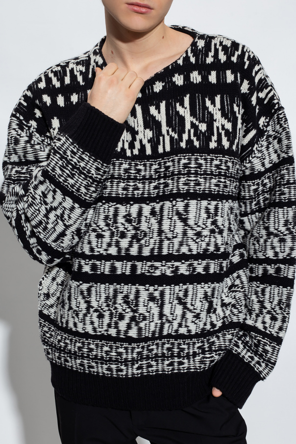 Black and white sweater from Givenchy x Chito. Made of lamb leather, this garment is enriched by a pattern and ribbed trims at the hem and cuffs.