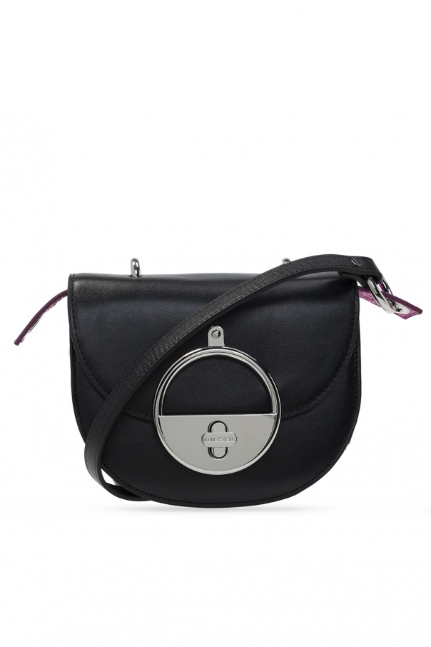 Black and pink ‘Maggie Br’ shoulder bag from Diesel. Made of leather, this design features a logo-embossed snap, decorative appliqué, adjustable shoulder strap, one internal compartment and silver-tone metal hardware.
