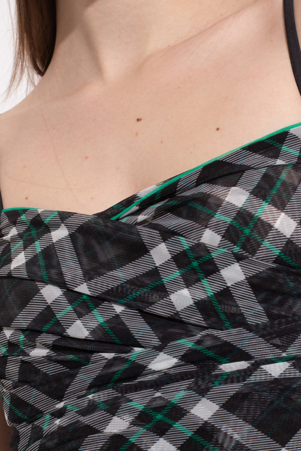 Black, white and green \'T-SOLAS-DRAP\' top from Diesel. This design features a check pattern and adjustable straps.