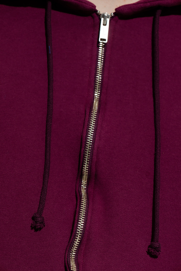 Purple sweatshirt with a drawstring hood from Undercover. Crafted from cotton with a relaxed fit, this style features a two-way zip fastening, a slightly elongated front hem, two slip pockets, two zip pockets, long sleeves and ribbed trims on the bottom hem and cuffs.