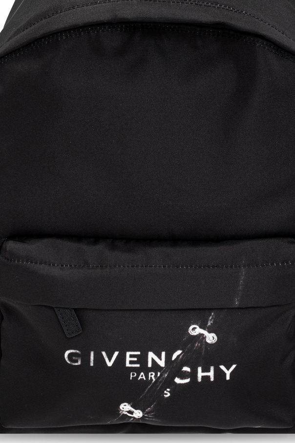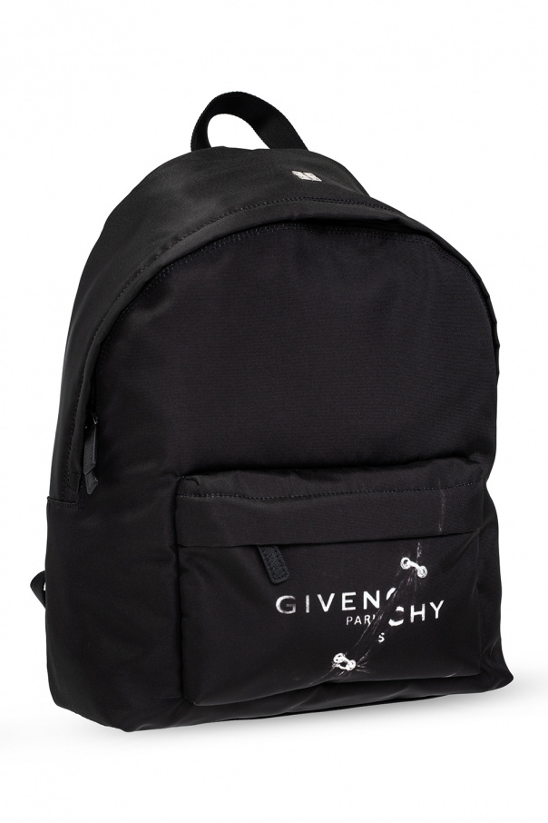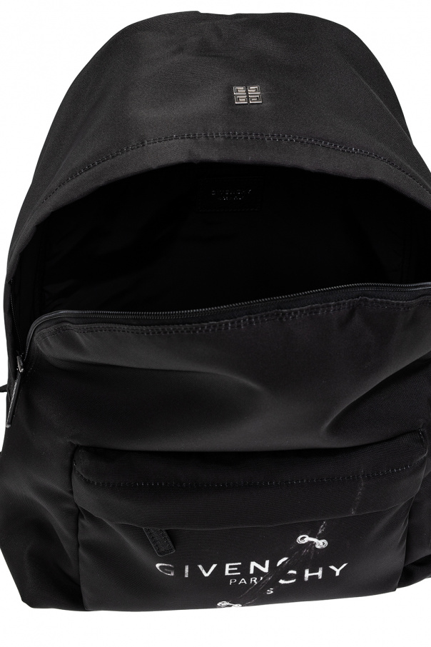 Black backpack from Givenchy. Fastened with a two-way zip, this design features a logo appliqué, printed pattern, front zip pocket, half-round handle, adjustable shoulder strap, silver-tone metal hardware and one internal compartment with one slip pocket.