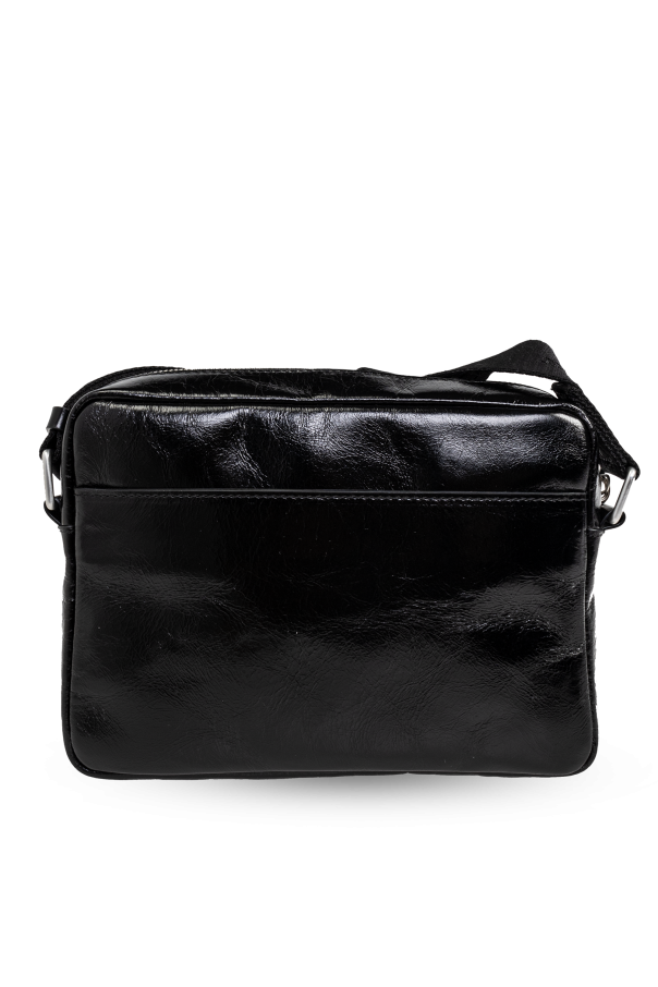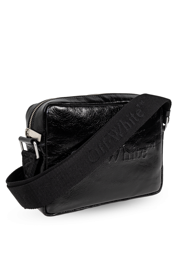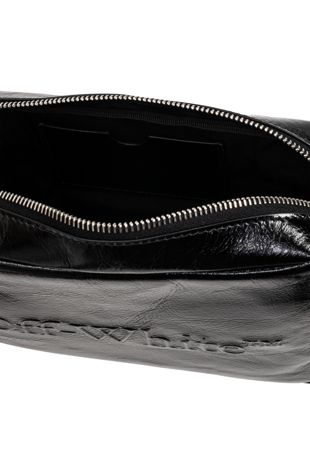 Introducing the \'Bookish\' Shoulder Bag by Off-White, a masterpiece of urban elegance and practical design. Crafted with precision, this exquisite accessory boasts a rectangular silhouette with rounded corners, enveloped in a specially textured leather that gleams with a subtle sheen. Its black hue is complemented by tonal inscriptions across the front panel and shoulder strap, presenting a seamless, sophisticated aesthetic. The wide, flat textile strap is adorned with the designer\'s logo, mirroring the subtlety of the bag\'s exterior. A sleek metallic zipper secures the contents within, its slider embossed with the distinguished Off-White signature. The interior, lined with a matching black material, features a discreetly embossed logo, a singular compartment, and a dedicated card slot, enhancing organizational convenience. Additionally, a slip pocket on the reverse side offers quick access to essentials. Details such as the special texture of the leather and the meticulously integrated logos underscore the unique identity of this piece. The \'Bookish\' Shoulder Bag is not merely an item of utility but a statement of refined taste. Why Choose the \'Bookish\' Shoulder Bag? Elegantly crafted from 100% leather with a distinct, glossy texture. Subtle, tonal branding adds a touch of exclusivity. Practical design featuring a metal zipper closure, internal compartment, card slot, and rear slip pocket. Wide, flat shoulder strap for superior comfort and style. Imbued with the creative vision of the renowned Off-White designer, making it a coveted piece for collectors and fashion enthusiasts alike.