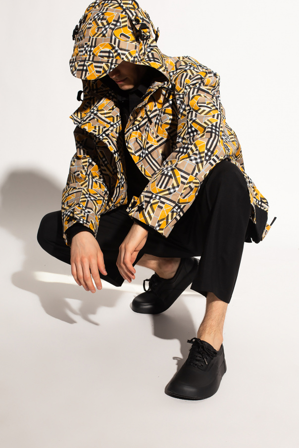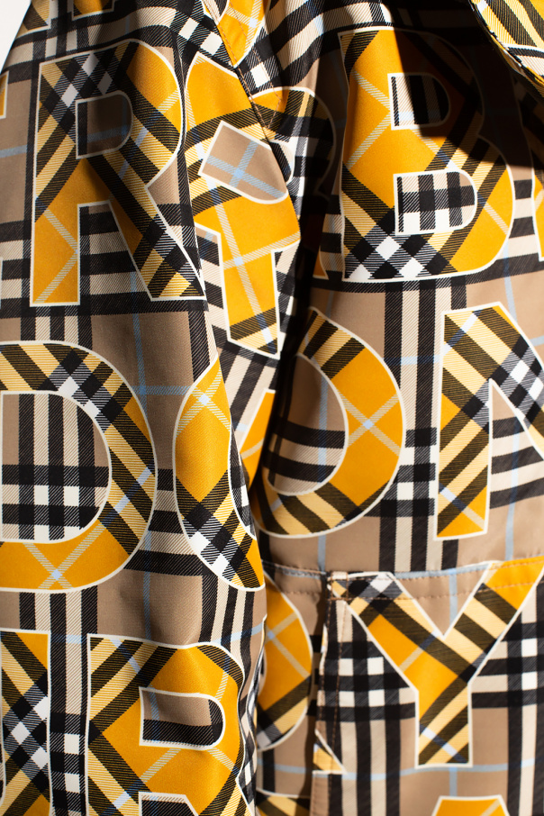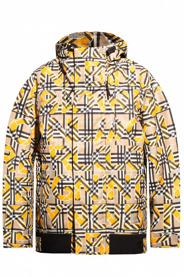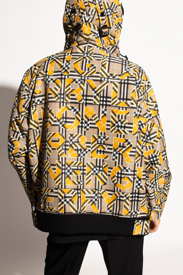 Multicoloured jacket with a drawcord-adjustable hood from Burberry. Emblazoned with the brand's signature check pattern and a logo print, this style secures with a two-way zip and velcro and features two snap-fastened pockets on the front, zipped vents on the sides and elasticized trims on the bottom hem and cuffs.